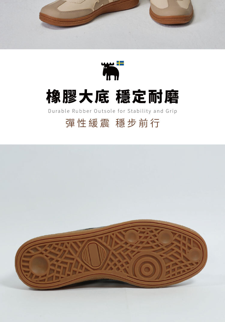 | A:鞋底使用橡膠材質,具備良好的抓地力與耐磨性,日常走路穩定舒適。 |