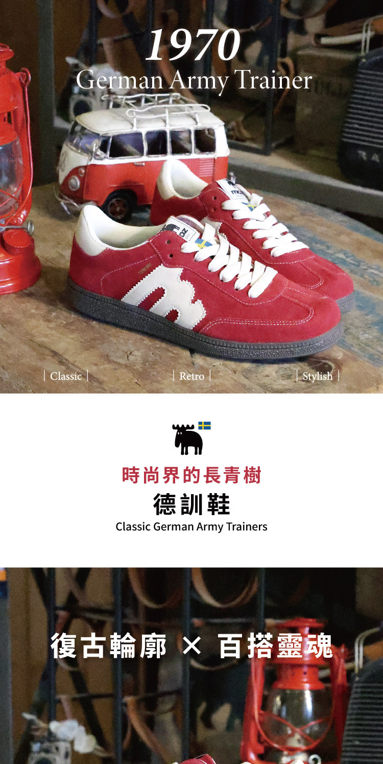 A:德訓鞋最早源自德國軍用訓練鞋,結合復古運動風格與實用設計,因為好搭配、耐穿,近年成為時尚經典。