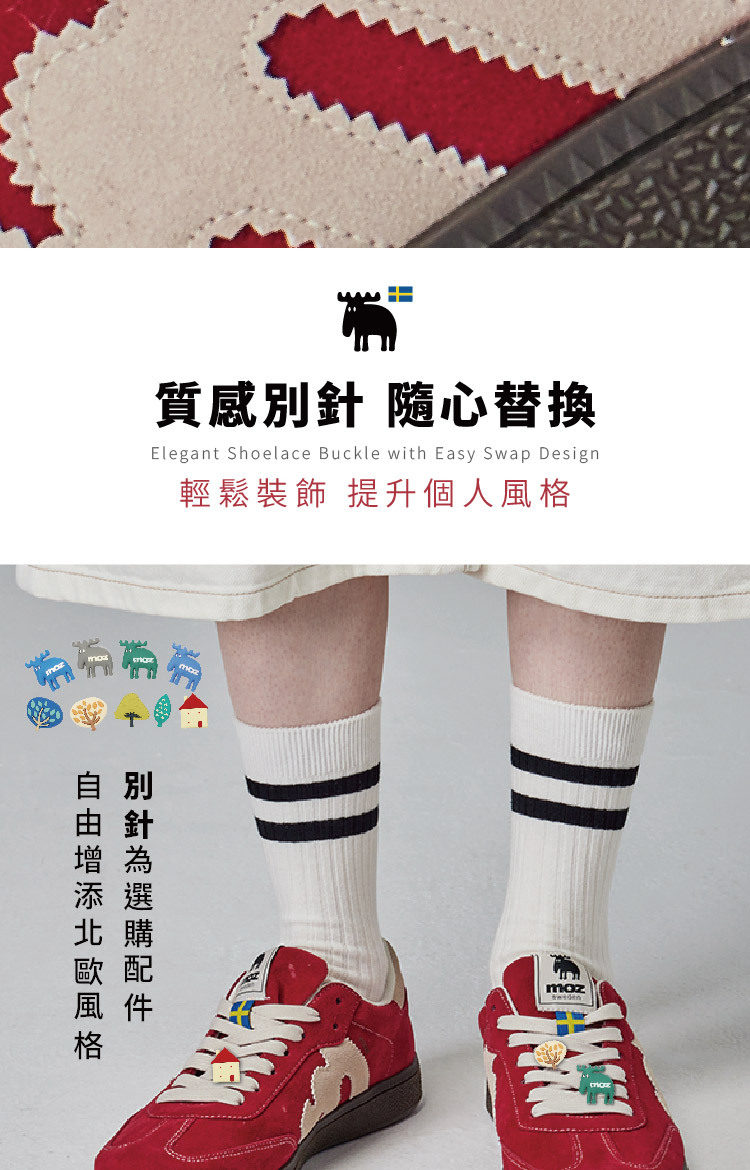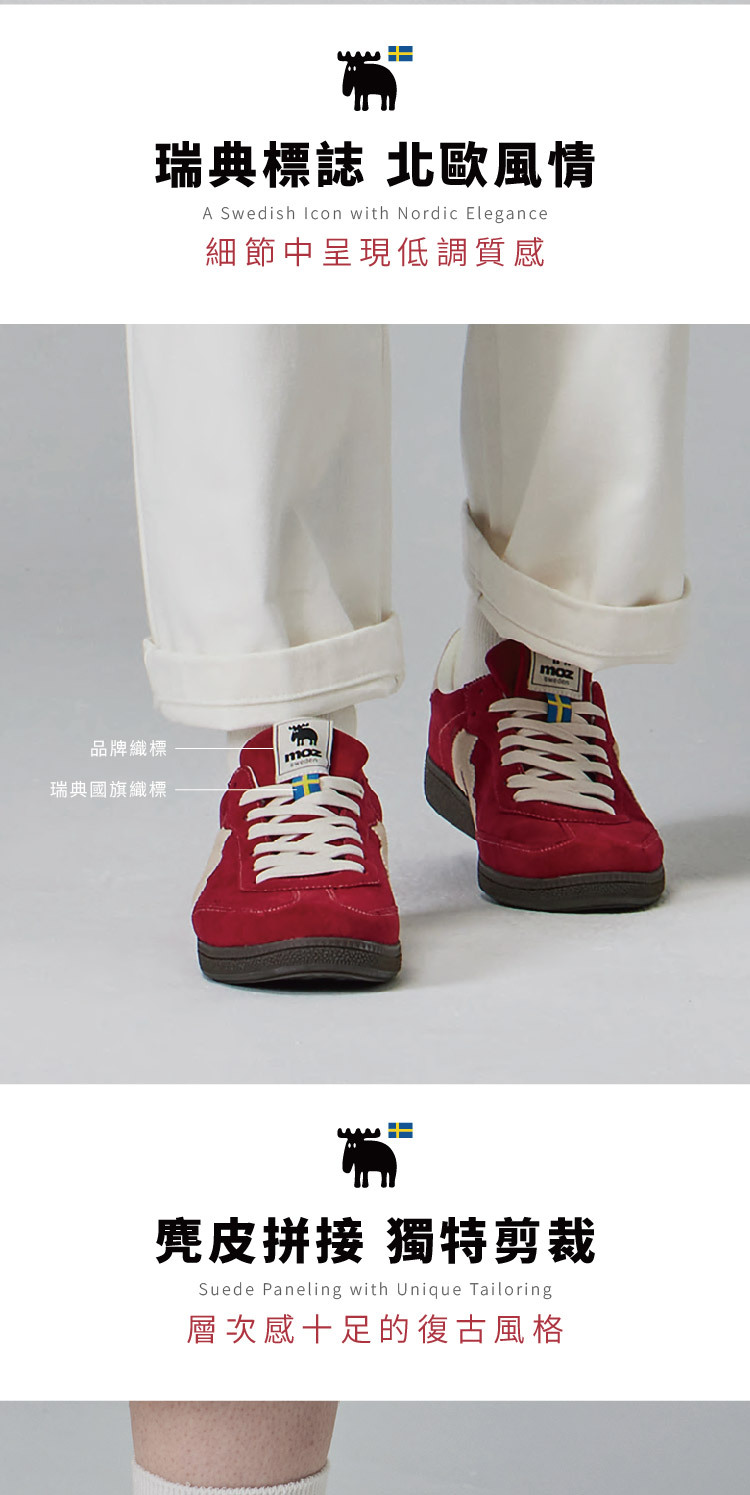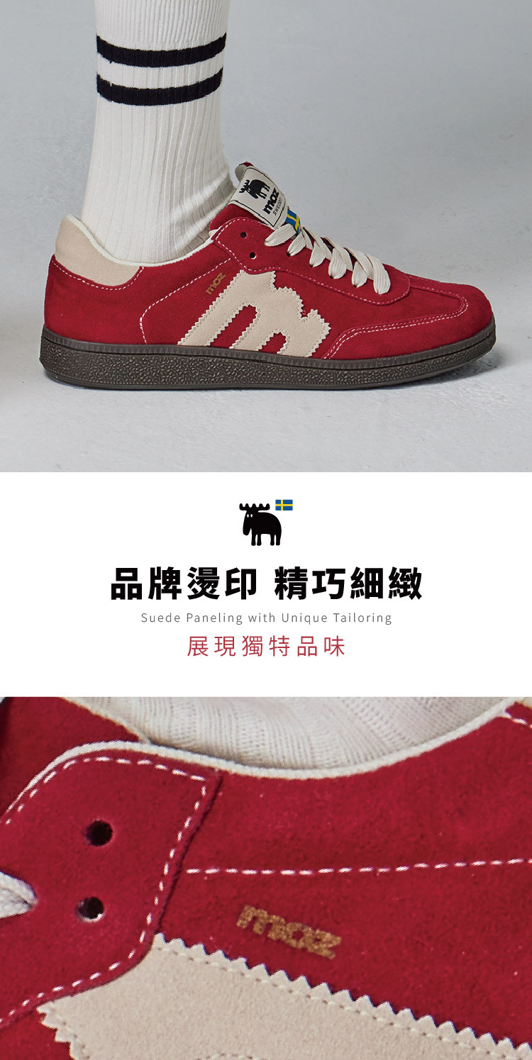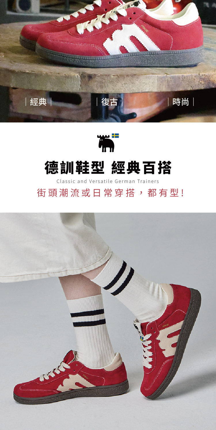 【熱銷】moz瑞典 駝鹿 經典再現 復古 德訓鞋 (胭脂紅)