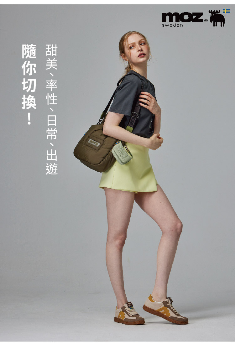 舒適耐看的配色,搭配 moz 標誌性小m 剪裁,細節中呈現低調質感。