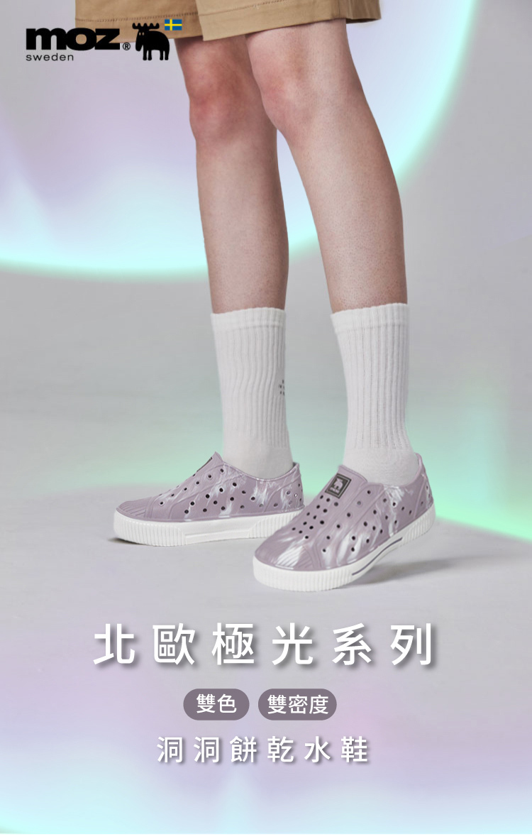 【北歐極光系列】moz 瑞典 駝鹿 雙色洞洞餅乾水鞋 (芋圓)-附鞋扣