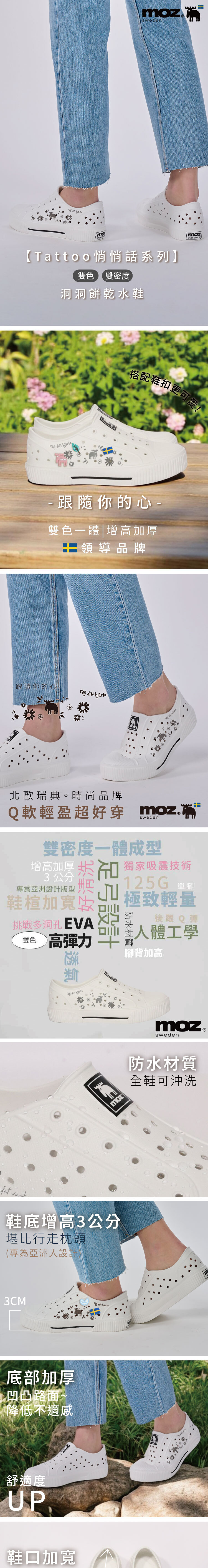 鞋底增厚3cm,同時具備Q彈柔軟設計,有效分散壓力、減少磨腳。 |