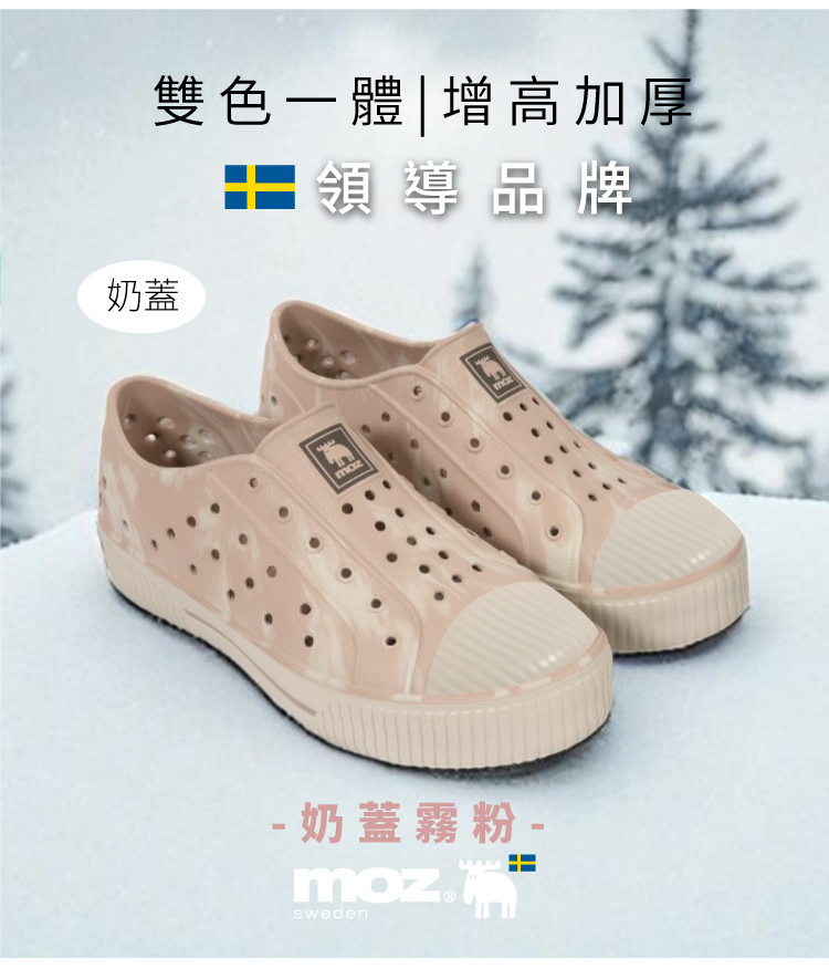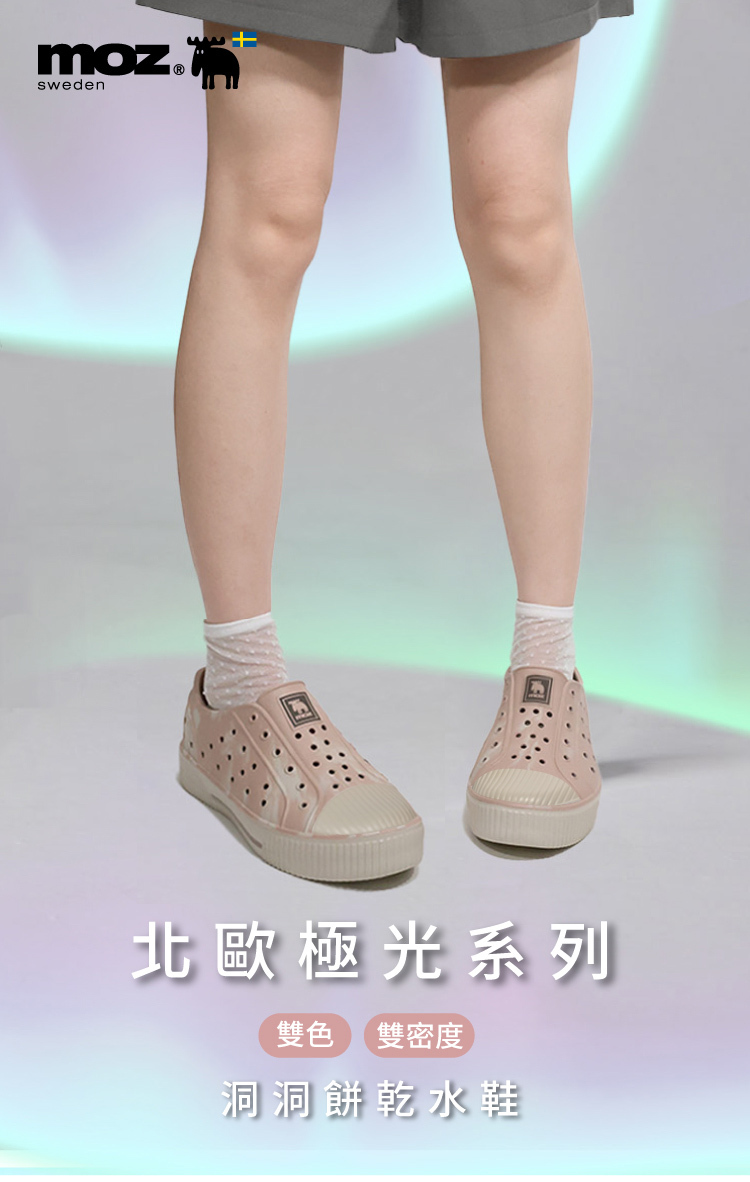 【北歐極光系列】moz 瑞典 駝鹿 雙色洞洞餅乾水鞋 (奶蓋霧粉)-附鞋扣