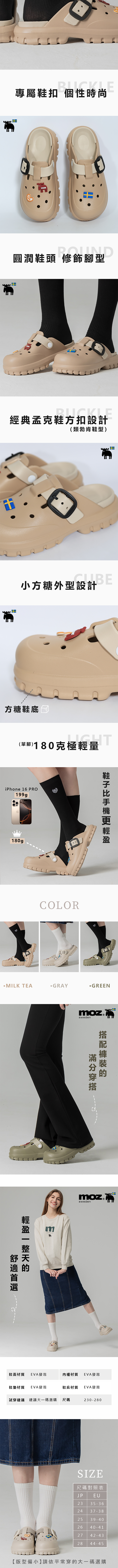 moz瑞典 駝鹿 小方糖 方扣 防水 洞洞鞋 拖鞋 涼鞋 (奶茶)