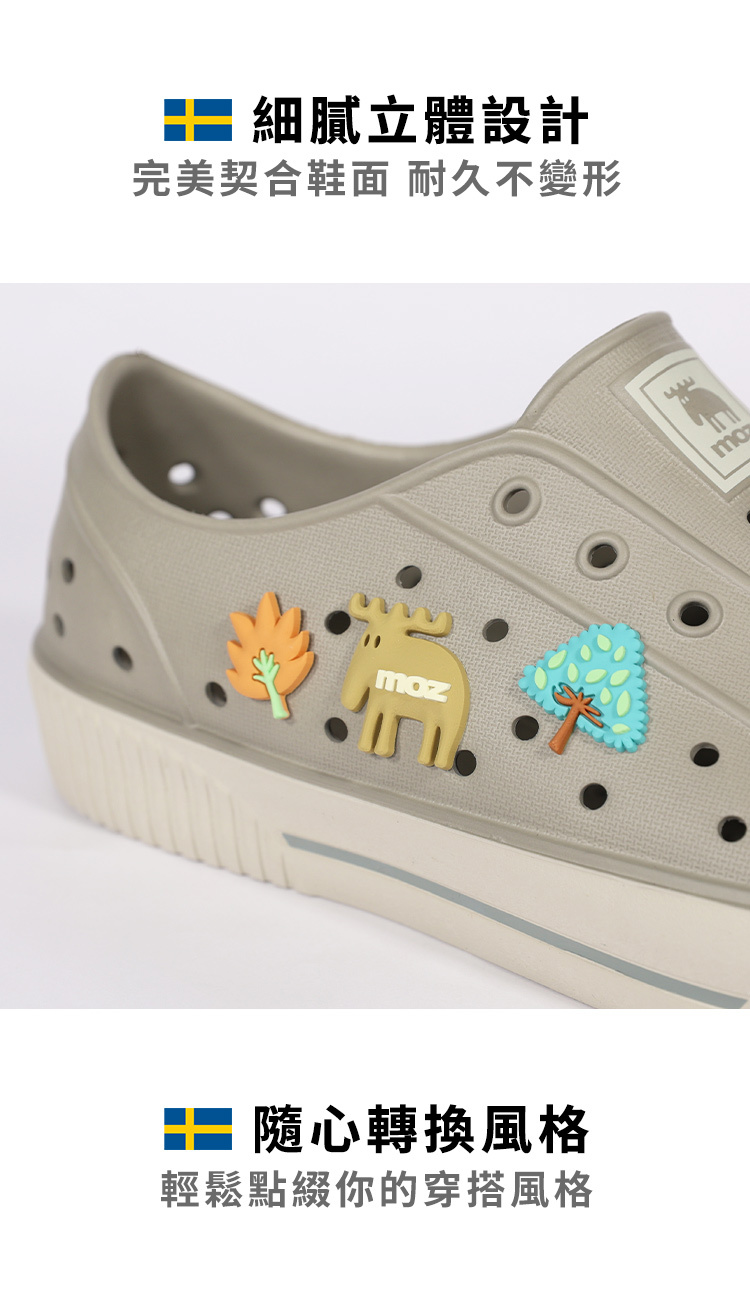 .輕鬆裝飾:瞬間提升個人風格,為鞋增添瑞典森林的自然氣息。