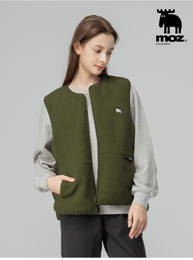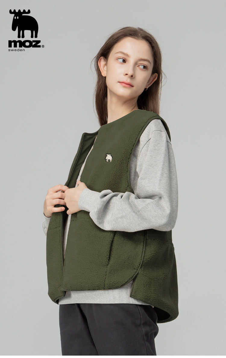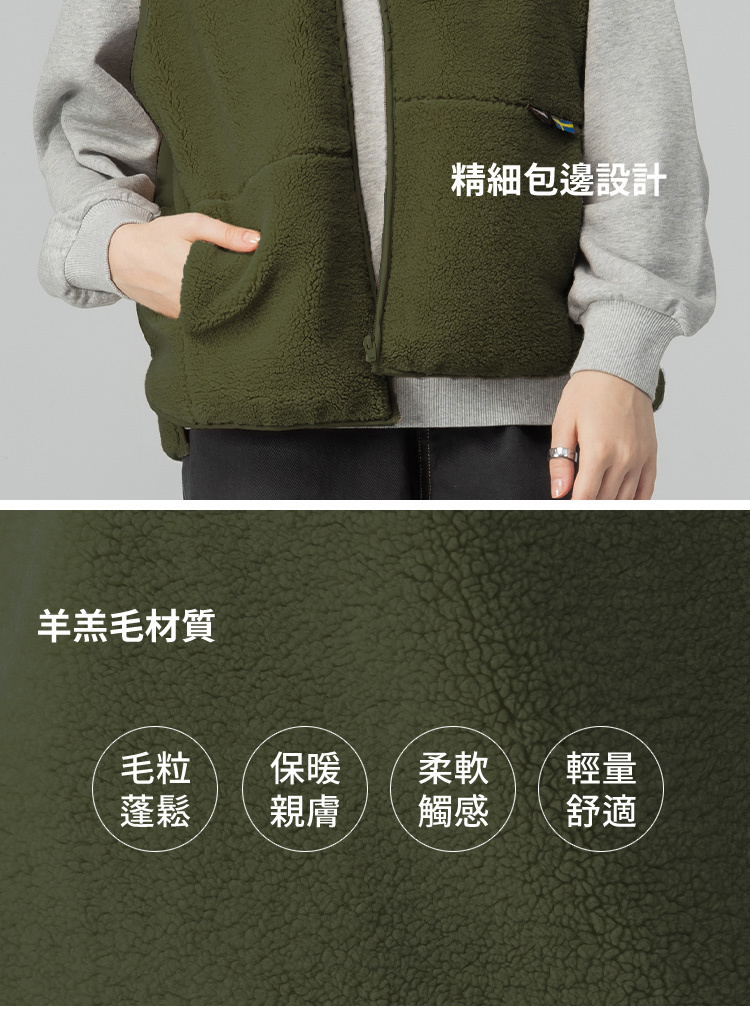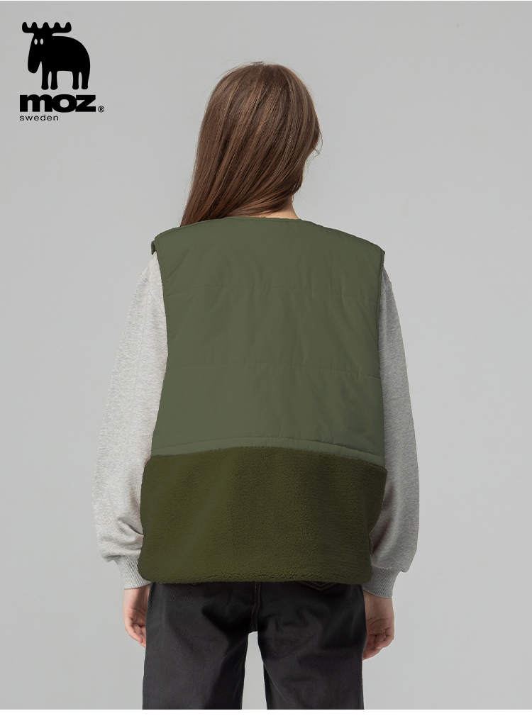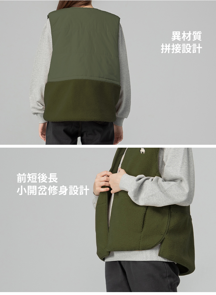 羊羔毛拼接鋪棉保暖背心外套(橄欖綠)女款