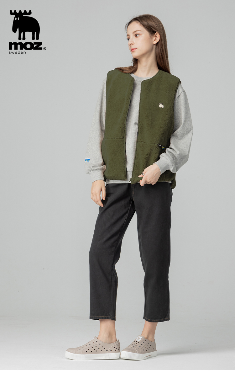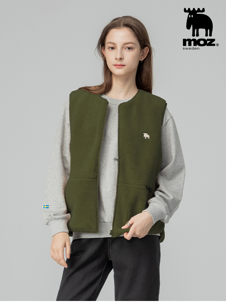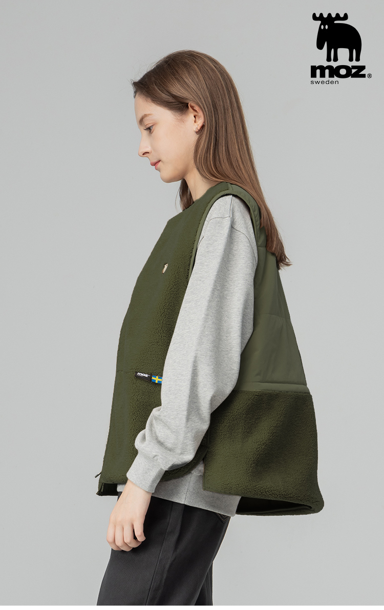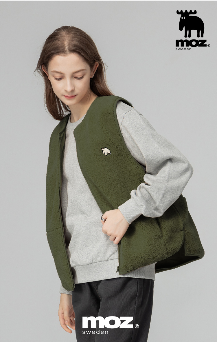 羊羔毛拼接鋪棉保暖背心外套(橄欖綠)女款