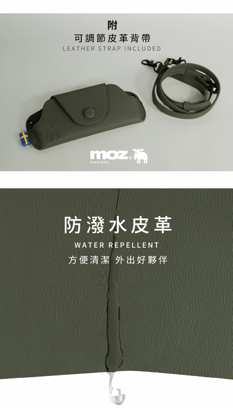 | A:moz 眼鏡包是一款結合北歐設計感與日常實用性的收納配件,嚴選防潑水皮革材質,搭配磁扣開合與金屬掛勾設計,既能保護眼鏡,也能隨身攜帶,質感與便利兼具。 |