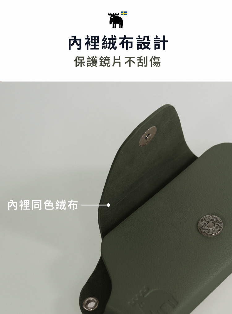 柔軟絨布內裡,能有效防止鏡片刮傷,保護更周到。