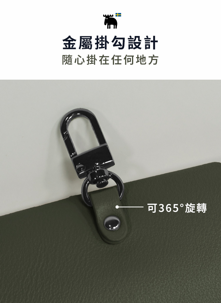 實用金屬掛勾,可輕鬆掛於包包、皮帶或褲頭,隨身攜帶更便利。