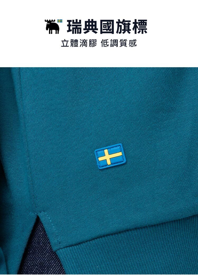 立體發泡 駝鹿蘑菇咬一口 100%純棉 開衩大學T-墨藍綠(亞洲版) 開衩 男款